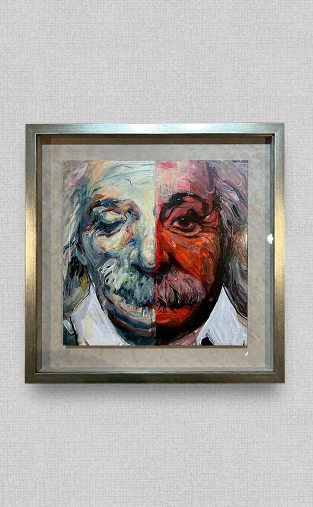 インパクトのある作品のため、シンプルなシルバーのフレームに
